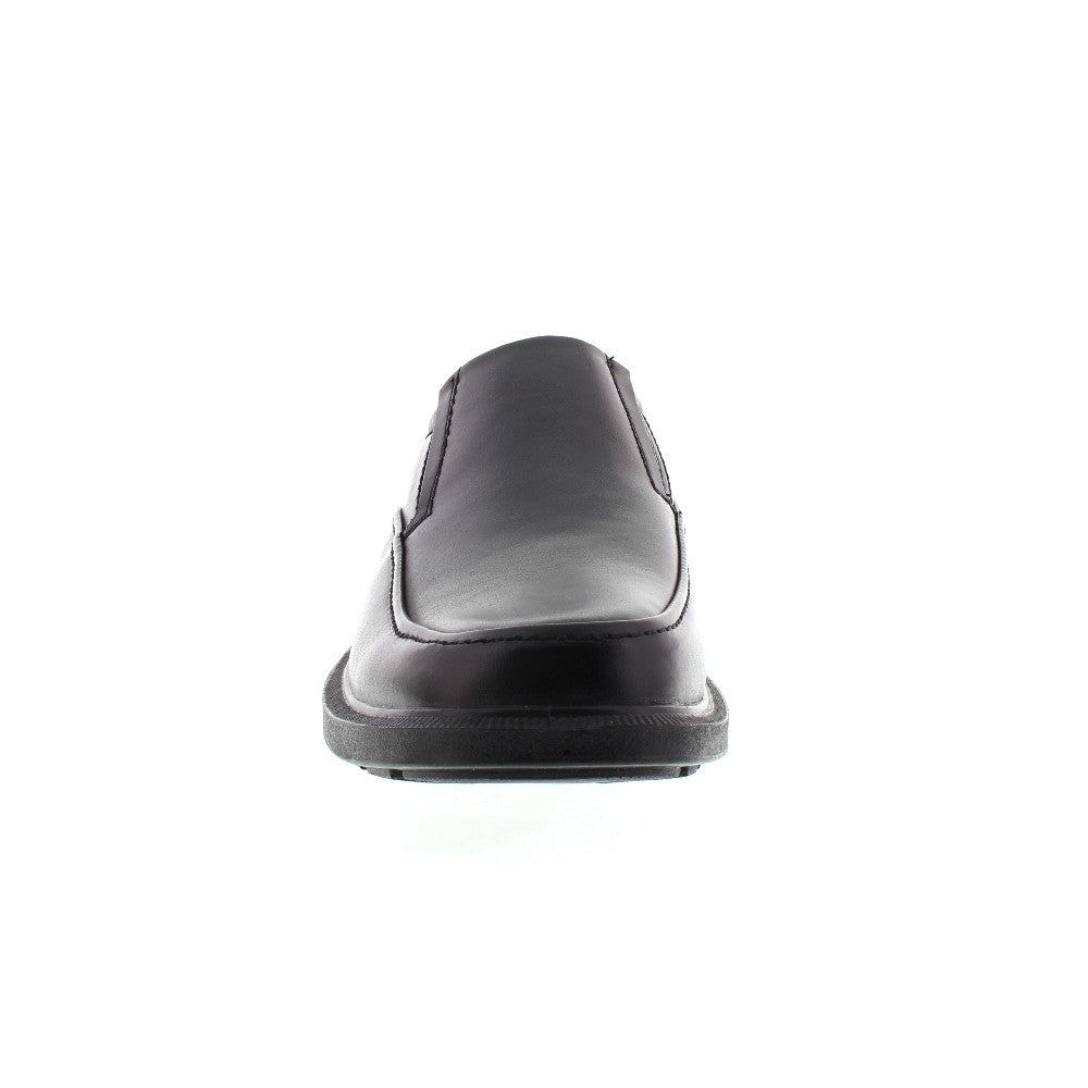We named our classic dress loafer the Brooklyn because we were inspired by the millions of New York City commuters we see every day. If there's one thing they know. it's that comfort is king when you're on your feet a lot. So we designed a shoe for business men who don't have time for the stiff. painful dress shoe of the past. Made from genuine leather with the timeless moc-toe stitch design. we added elements for all-day comfort to this slip-on loafer: soft cushioning on the inside and at the collar. double elastic gore for a more flexible fit and compression nodules in the polyurethane outsole for those spots that are hardest on your feet. This loafer is great for travel and it's airport friendly too. since it has no metal shank.